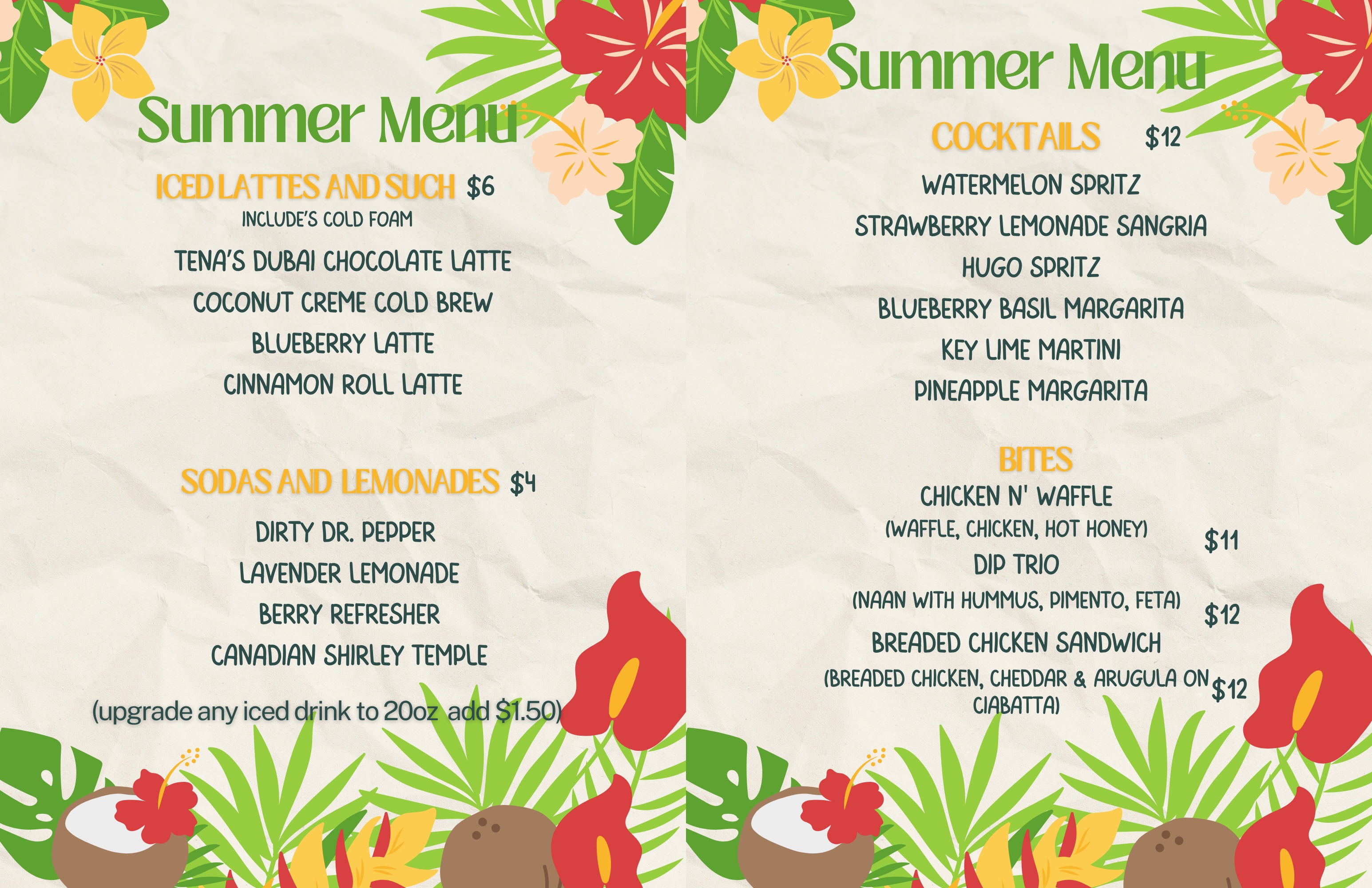 Such a cute spot! The espresso martini was delicious! The coffees we tried was great as well! Had the white chocolate mocha and chai tea latte!! Definitely recommend! We also tried a few of the specials and they were yummy. The servers were friendly!! We also had our toddlers with and really appreciated how kid friendly the staff was!